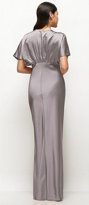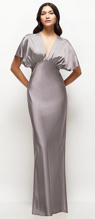 Plunge Neck Kimono Sleeve Satin Bias Maxi Dress in cashmere gray