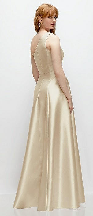 Bow One-Shoulder Full A-Line Satin Maxi Dress in champagne