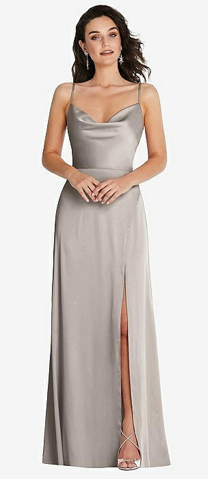 Cowl-Neck A-Line Maxi Dress with Adjustable Straps in taupe