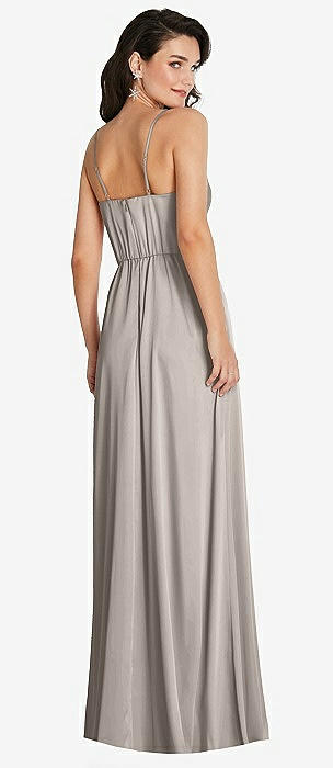 Draped Chiffon Grecian Column Gown with Convertible Straps in cashmere gray