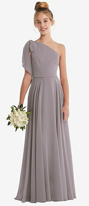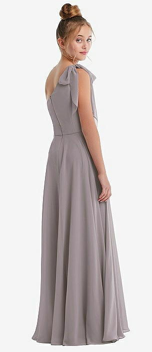One-Shoulder Scarf Bow Chiffon Junior Bridesmaid Dress in cashmere gray