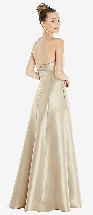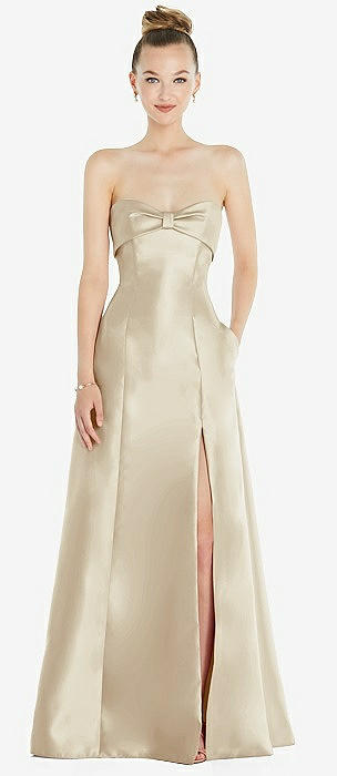 Bow Cuff Strapless Satin Ball Gown with Pockets in champagne