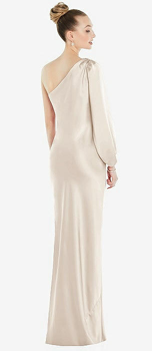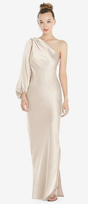 One-Shoulder Puff Sleeve Maxi Bias Dress with Side Slit in oat