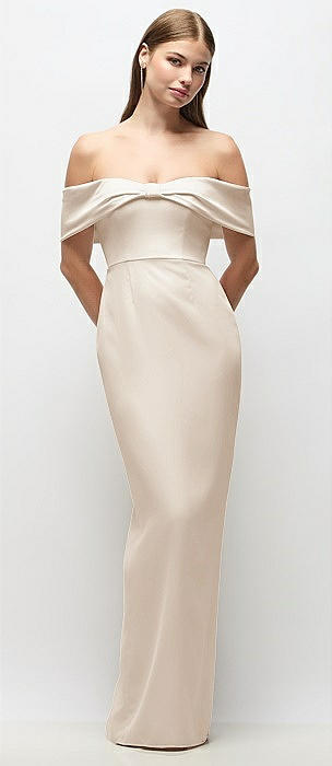 Off-the-Shoulder Crepe Column Maxi Dress with Bow-Pinch Detail in oat