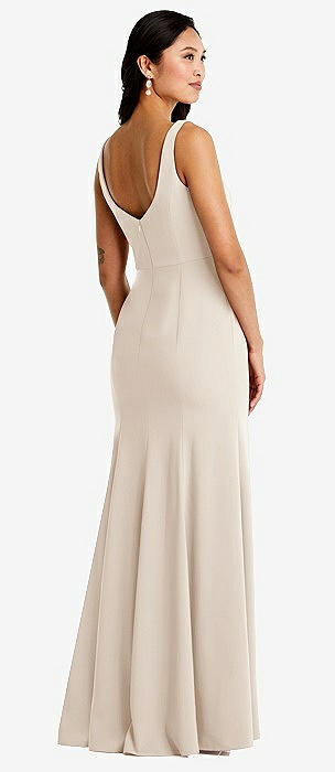 Tie-Back Cutout Trumpet Gown with Front Slit in cashmere gray