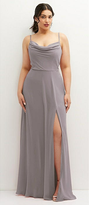 Soft Cowl-Neck A-Line Maxi Dress with Adjustable Straps in cashmere gray