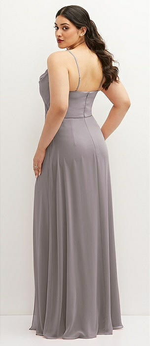 Chiffon Corset Maxi Dress with Removable Off-the-Shoulder Swags in cashmere gray