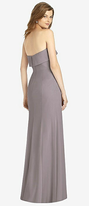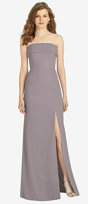 Strapless Satin Gown with Draped Front Slit and Pockets in champagne