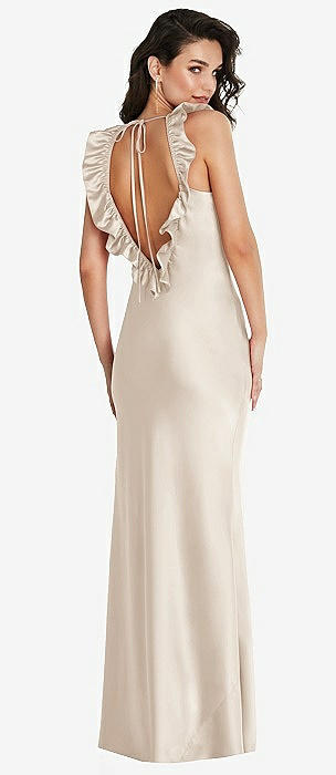 Ruffle Trimmed Open-Back Maxi Slip Dress in oat