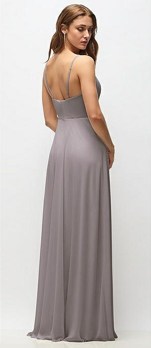 Wrap Bodice Chiffon Maxi Dress with Adjustable Spaghetti Straps in cashmere gray