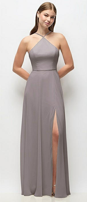 High-Neck Halter Chiffon Maxi Dress with Adjustable Spaghetti Straps in cashmere gray