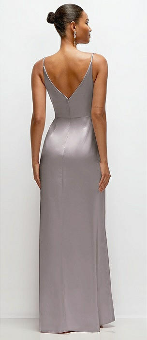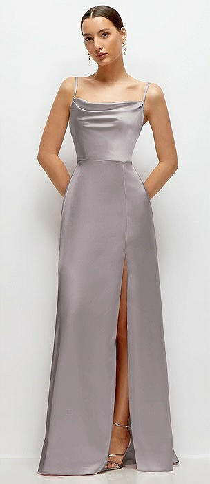 Cowl Neck Satin Maxi Dress with Adjustable Spaghetti Straps in cashmere gray