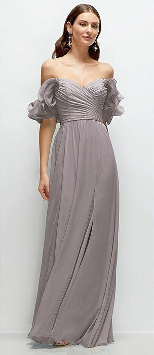 Convertible Ruffle Strap Chiffon Maxi Dress with Full Circle Skirt in cashmere gray
