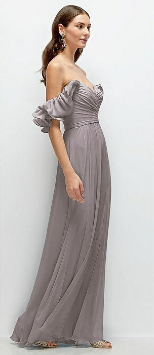 Ruffle Strap Chiffon Bustier Maxi Dress with Ruffle Hem A-Line Skirt in cashmere gray
