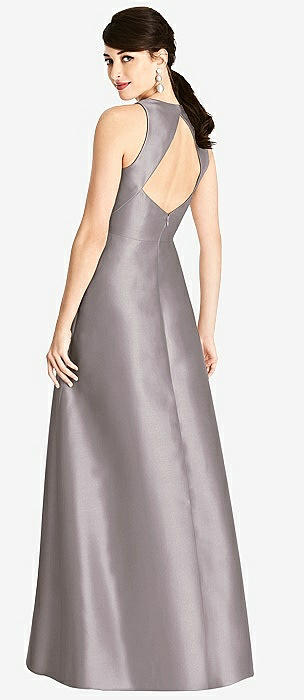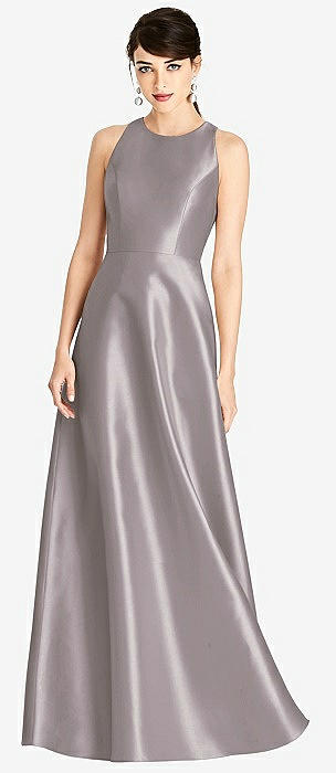 Sleeveless Open-Back Satin A-Line Dress in cashmere gray