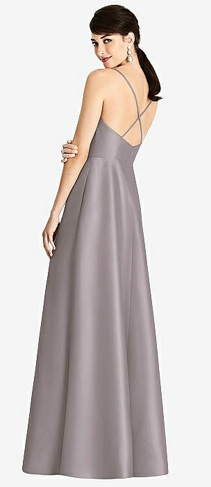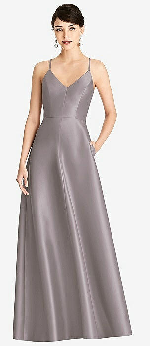 V-Neck Full Skirt Satin Maxi Dress in cashmere gray