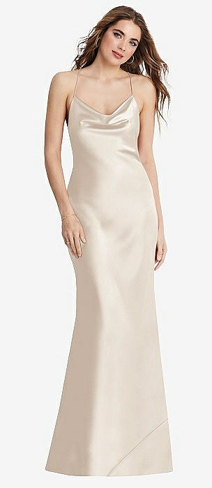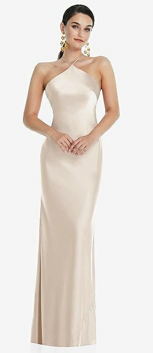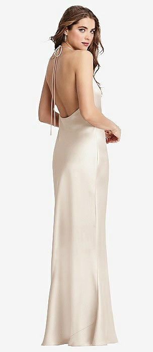 Draped Twist Halter Tie-Back Trumpet Gown in oat