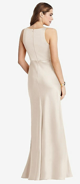 High Neck Backless Maxi Dress with Slim Belt in toasted sugar