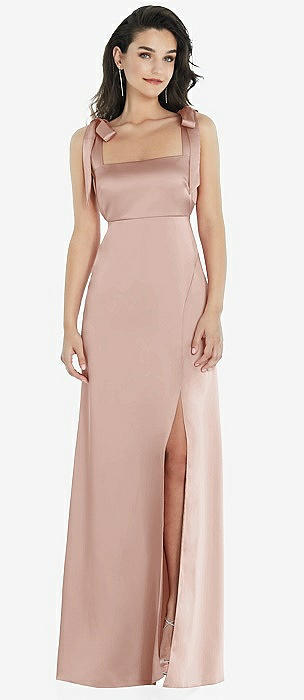 Flat Tie-Shoulder Empire Waist Maxi Dress with Front Slit in toasted sugar