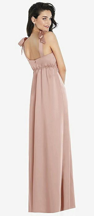 Tie Shoulder Empire Waist Junior Bridesmaid Dress in toasted sugar