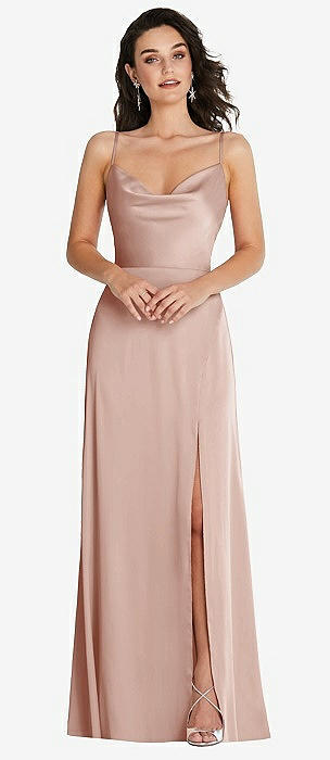 Cowl-Neck A-Line Maxi Dress with Adjustable Straps in toasted sugar