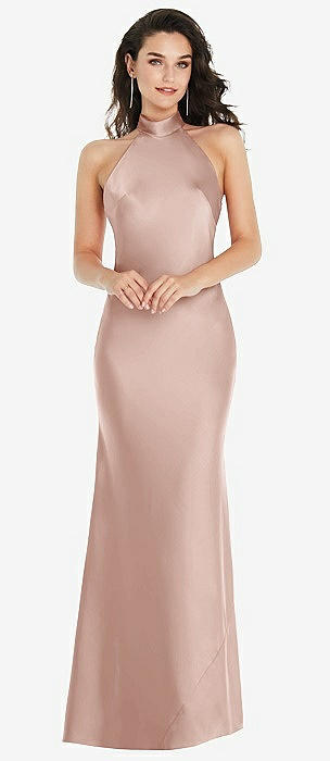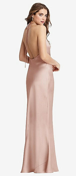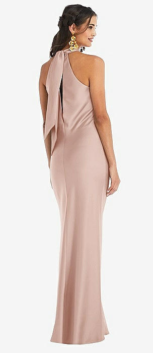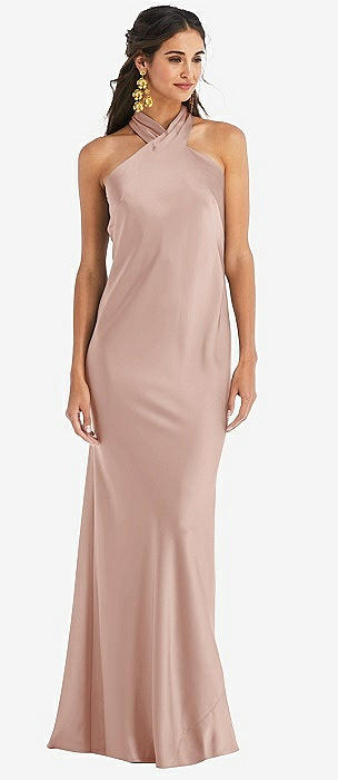 Draped Twist Halter Tie-Back Trumpet Gown in toasted sugar