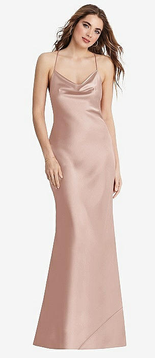 Cowl-Neck Criss Cross Back Slip Dress in toasted sugar