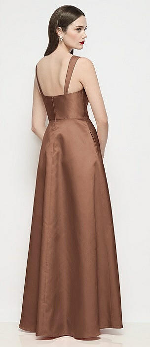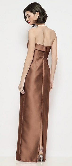 Strapless Cuff Neck Satin Maxi Dress with Column Skirt in cognac