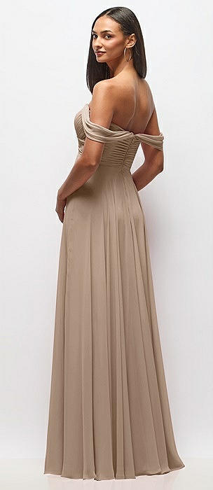 Off-the-Shoulder Basque Corset Chiffon Maxi Dress in topaz