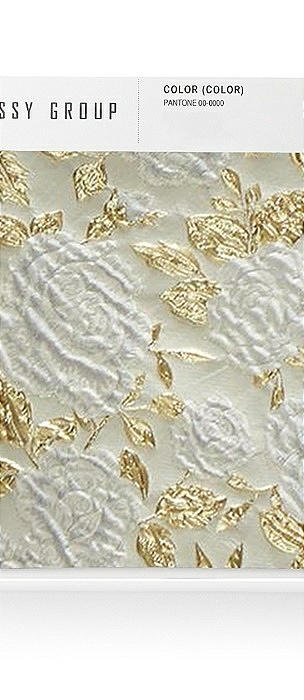 Bow One-Shoulder Gold Leaf Brocade Maxi Dress with Trumpet Skirt in winter mist