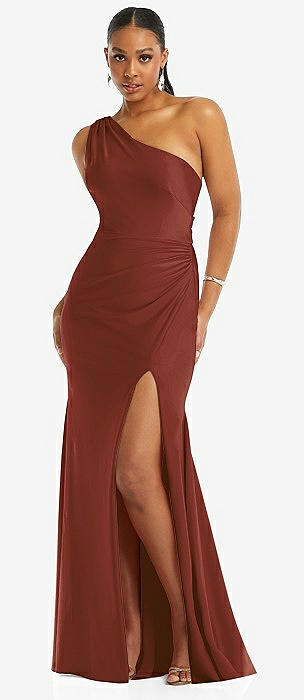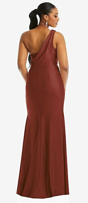 Chiffon One-Shoulder Maxi Dress with Draped Cowl Neckline in auburn moon