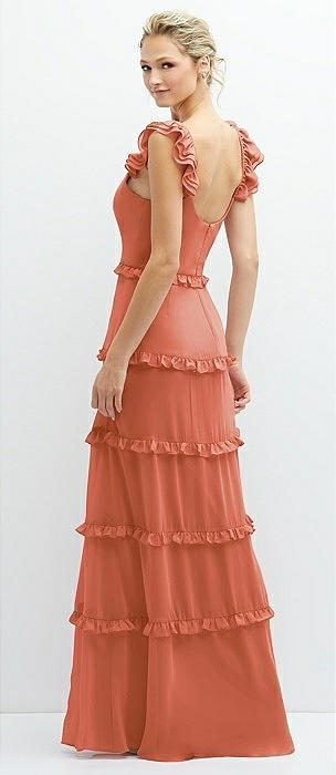 Tiered Chiffon Maxi A-line Dress with Convertible Ruffle Straps in terracotta copper