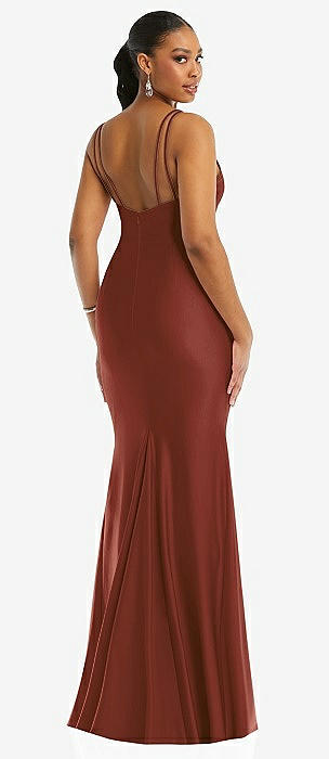 Cowl-Neck Open Tie-Back Stretch Satin Mermaid Dress with Slight Train in auburn moon