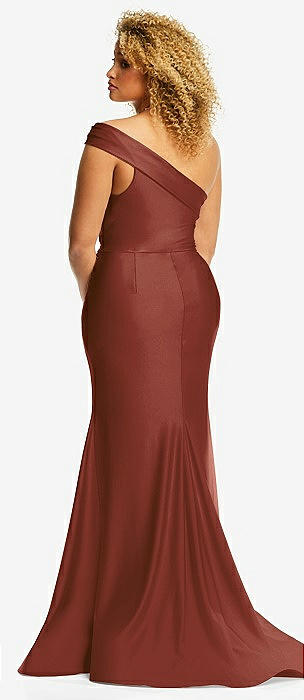 One-Shoulder Bias-Cuff Stretch Satin Mermaid Dress with Slight Train in auburn moon