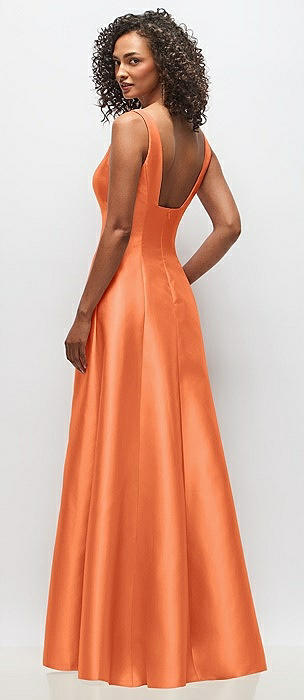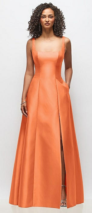 Sleeveless Square-Neck Princess Line Gown with Pockets in portofino orange