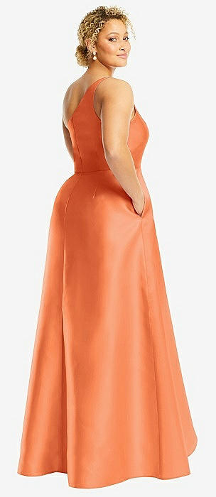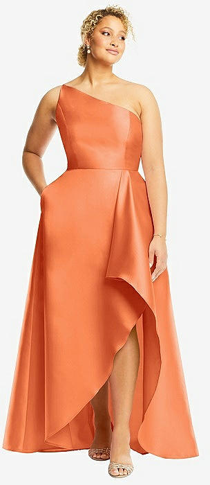 One-Shoulder Satin Gown with Draped Front Slit and Pockets in portofino orange
