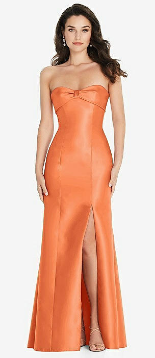 Bow Cuff Strapless Princess Waist Trumpet Gown in portofino orange