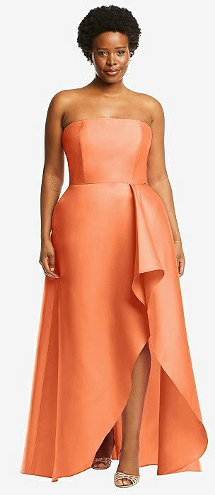 Strapless Satin Gown with Draped Front Slit and Pockets in portofino orange