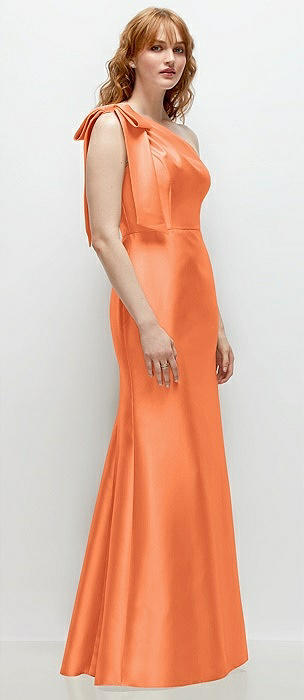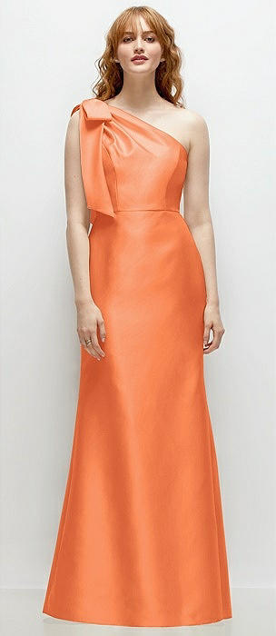Bow One-Shoulder Satin Trumpet Gown in portofino orange