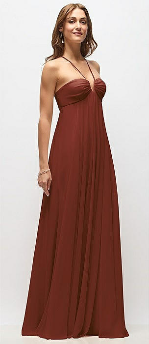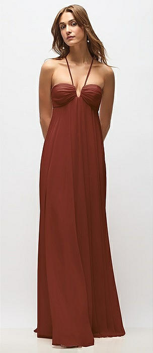 Empire Waist Chiffon Halter Maxi Dress with Convertible Spaghetti Straps in auburn moon