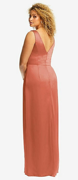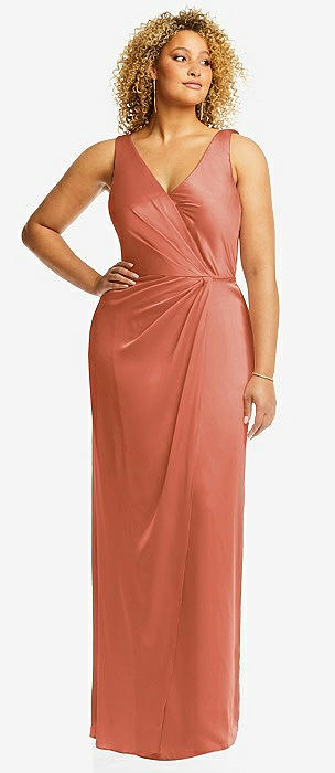 Faux Wrap Whisper Satin Maxi Dress with Draped Tulip Skirt in terracotta copper