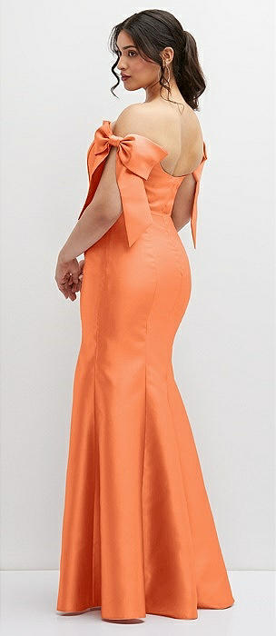 Asymmetrical Bow Off-Shoulder Satin Gown with Ballroom Skirt in portofino orange