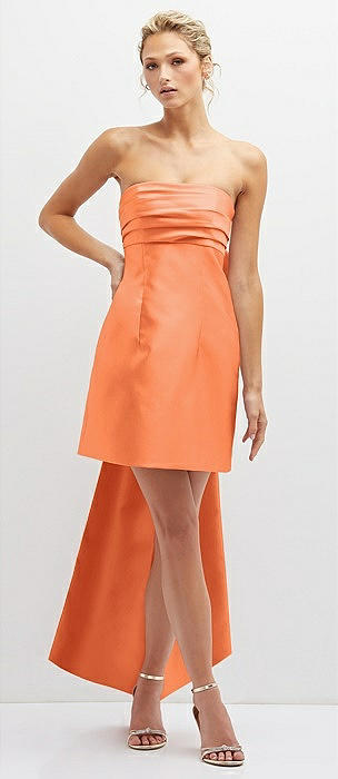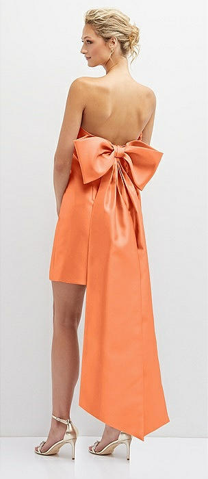 Strapless Satin Column Mini Dress with Oversized Bow in portofino orange