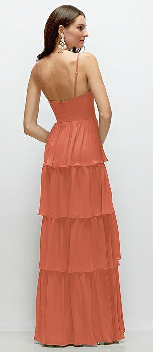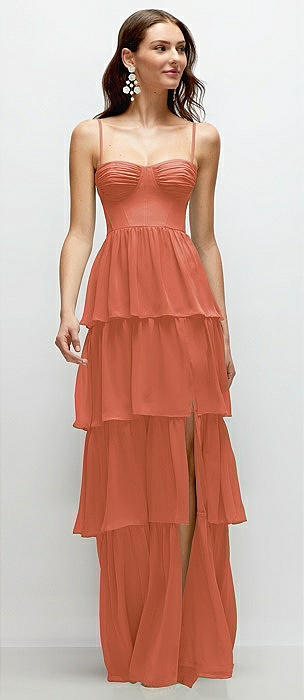 Bustier-Style Chiffon Tiered Ruffle Maxi Dress with Adjustable Straps in terracotta copper