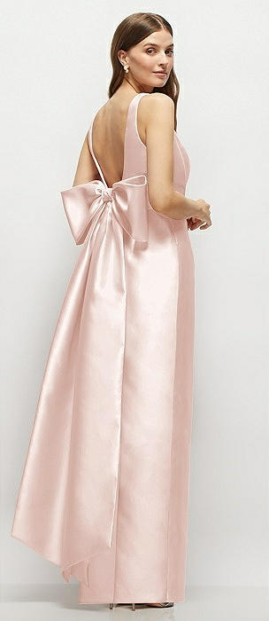 Sleeveless Satin Trumpet Gown with Bow at Open-Back in blush