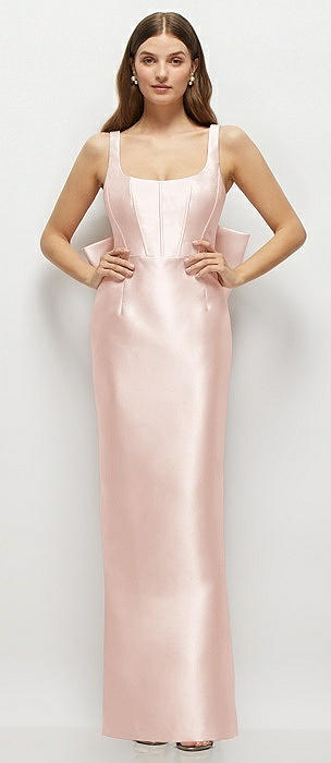 Scoop Neck Corset Satin Maxi Dress with Floor-Length Bow Tails in blush
