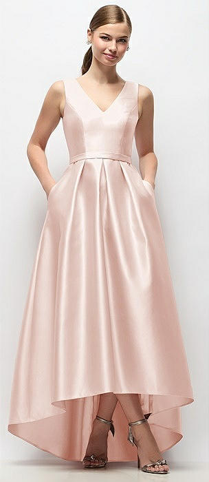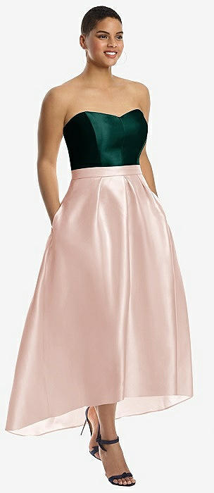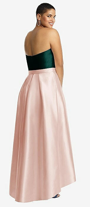 Strapless Deep Ruffle Hem Satin High Low Dress with Pockets in blush