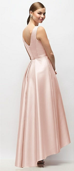 Bateau Neck Satin High Low Cocktail Dress in blush