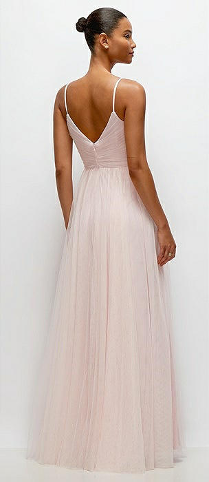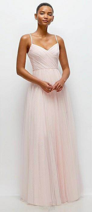 Ruched Wrap Bodice Tulle Maxi Dress with Full Skirt in ballet pink