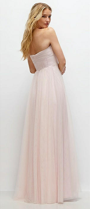 Strapless Twist Cup Tulle Corset Dress with Full Maxi Skirt in ballet pink